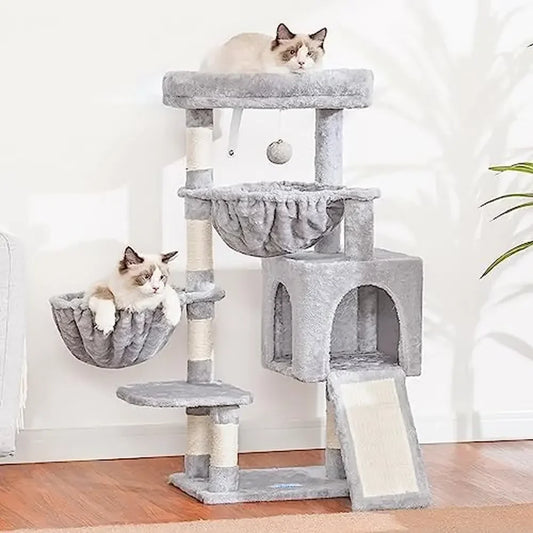 Cat Tree Tower Condo Hammocks Cat Scratching Posts Large Bed House Cozy Cave Light Basket Sisal Ball Toy Sturdy Stable Climbing